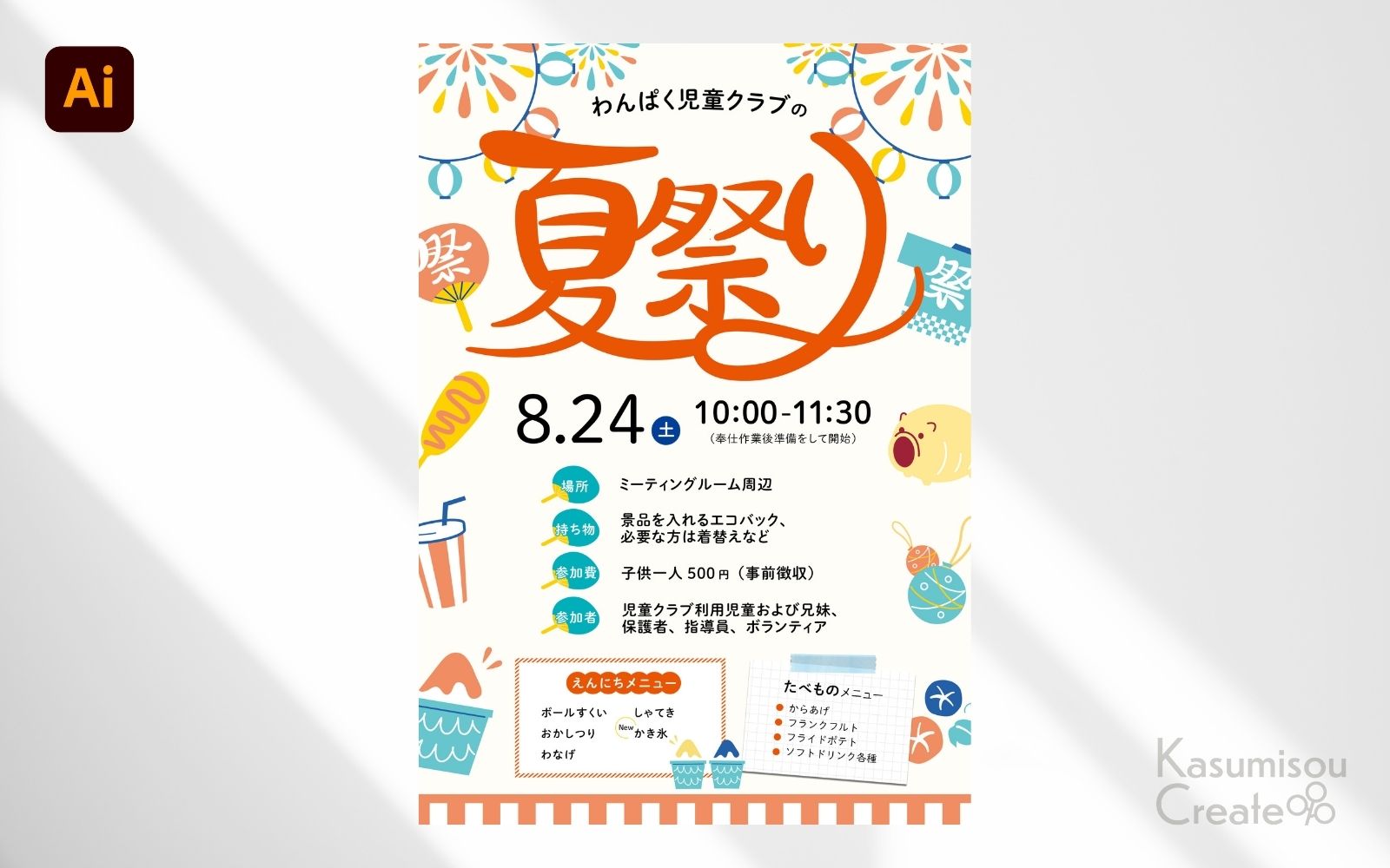 学童で毎年開催されている夏祭りイベントのポスター兼チラシを制作。