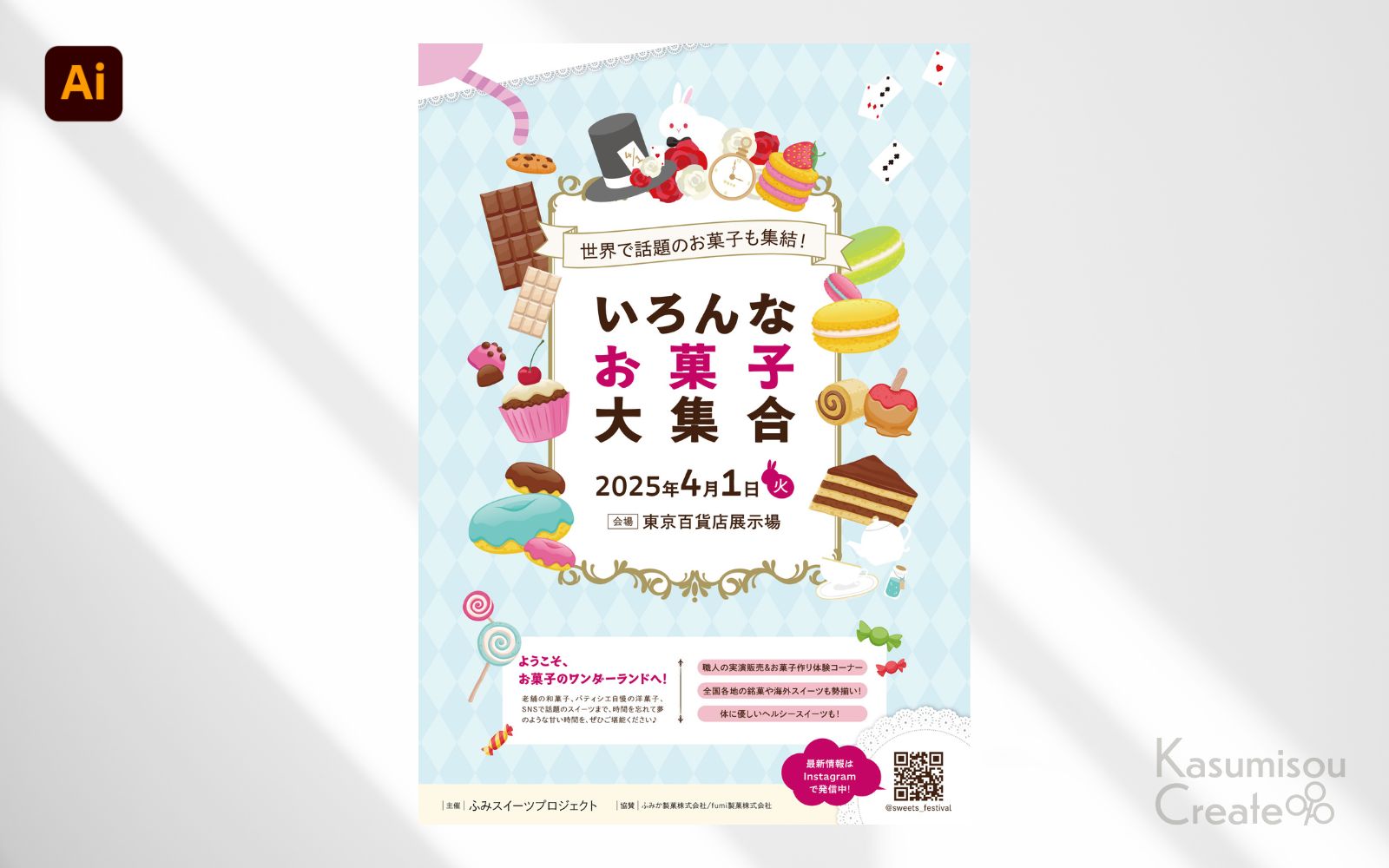 - お菓子の大きさに大小をつけタイトル周りのメリハリを意識しています。