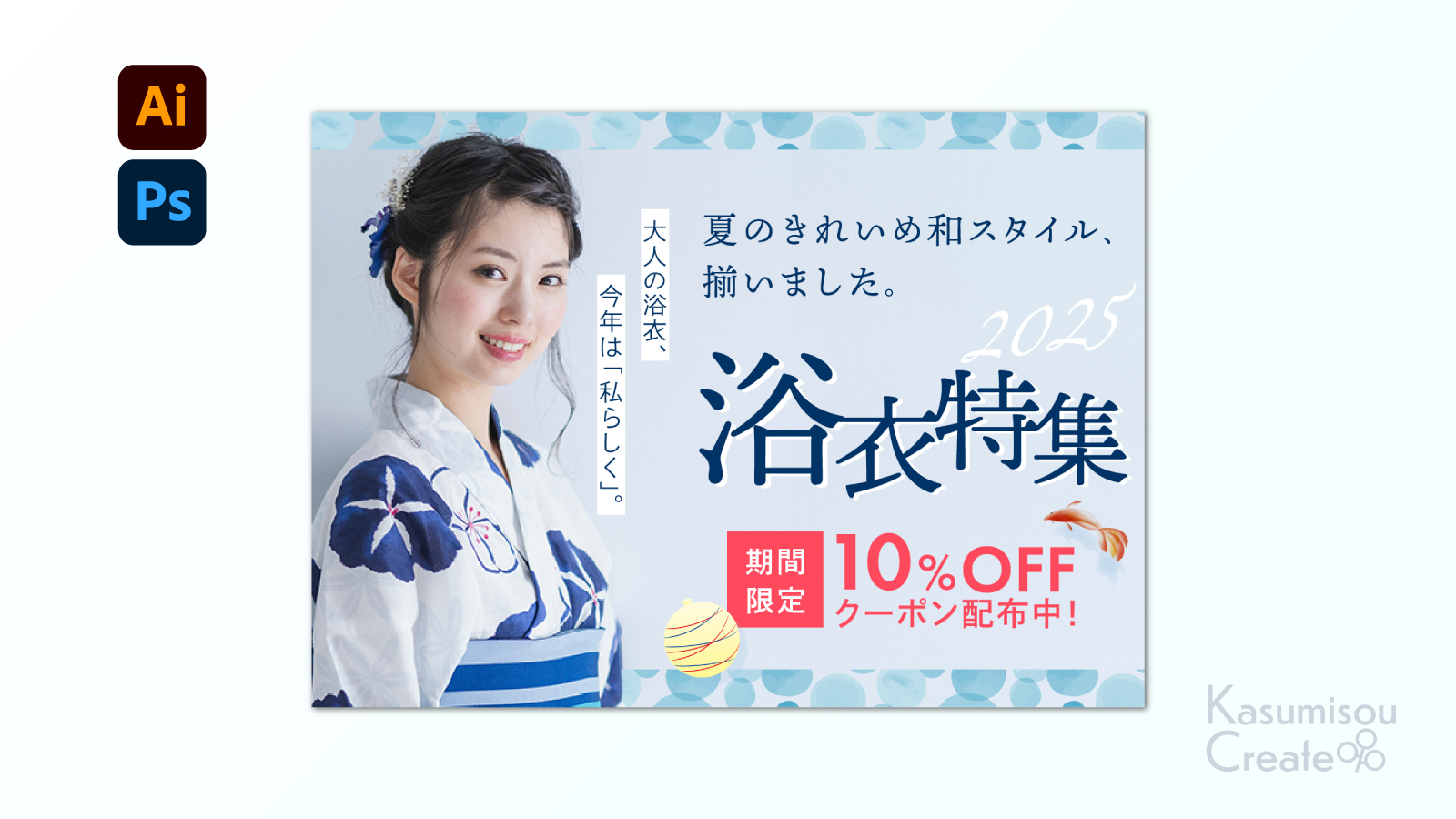 30〜40代女性をターゲットに、楽天市場の浴衣特集バナーを想定したデザインを制作しました。