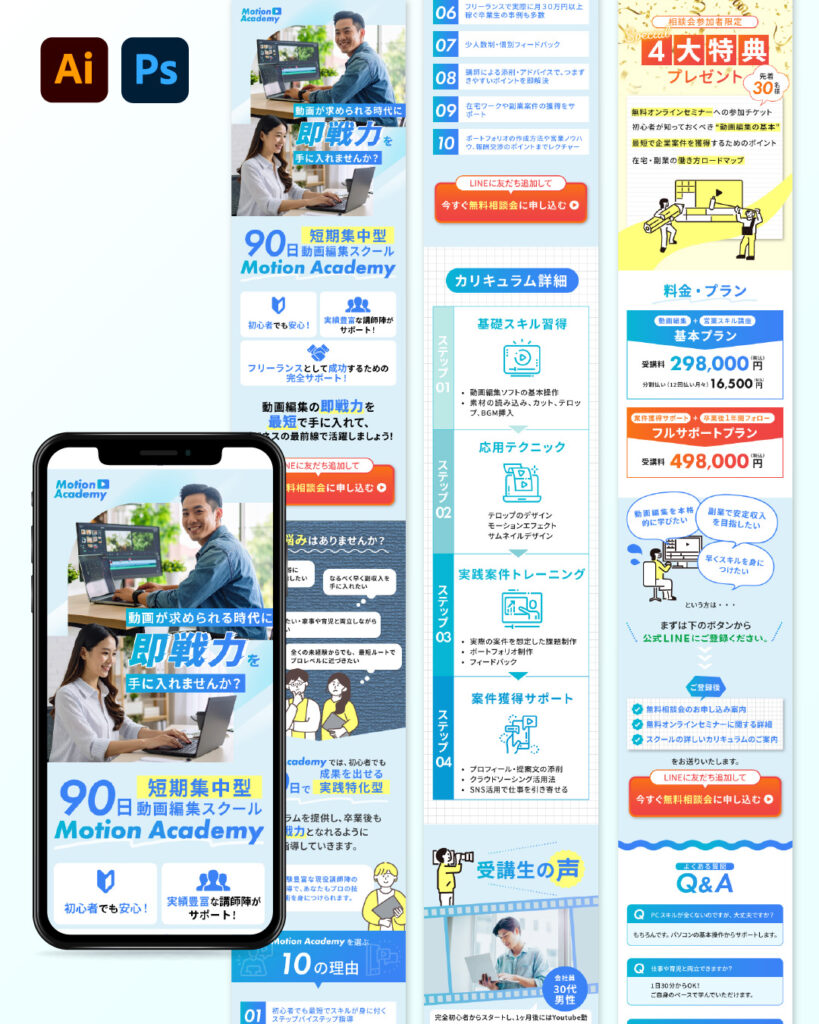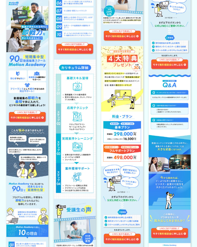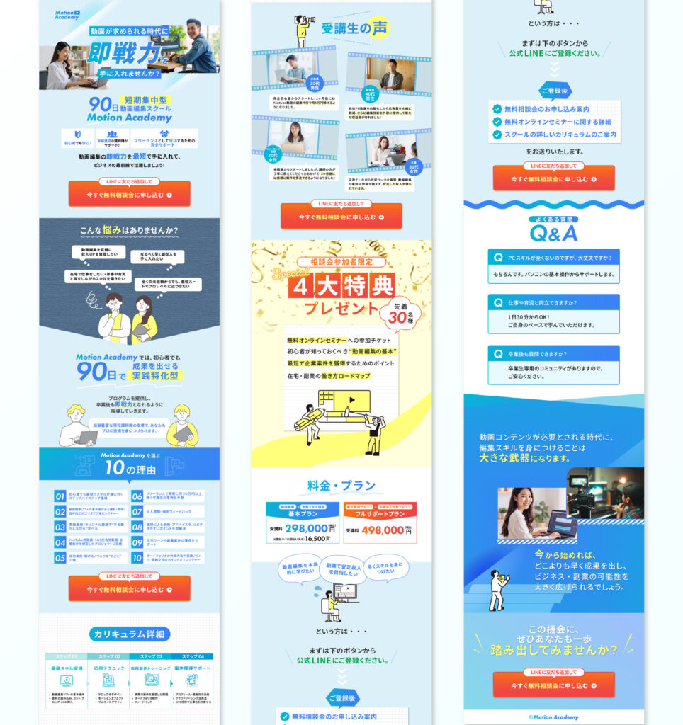 架空の動画編集スクール「Motion Academy」を想定したLPデザインを制作しました。